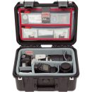 Store, transport, and protect two cameras, up to four lenses, and related accessories with the watertight, dustproof, molded SKB iSeries 1309-6 Case with Think Tank Photo Dividers & Lid Organizer. The black case features two trigger latches, two metal-reinforced locking loops for optional padlocks, an automatic ambient pressure-equalization valve, and an over-sized top handle. Under the lid is an organizer with two zippered clear mesh pockets and a polyester-lined iPad/laptop top-loading pocket. The lid organizer is attached with touch-fastening fabric.